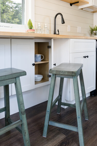 Customize your tiny house with all the finishings; tile, cabinetry, paint and hardware!